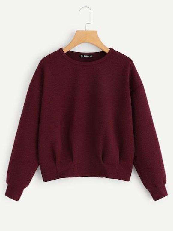 *Üst: Amblemsiz bordo renk tişört, sweatshirt (Bisiklet Yaka)